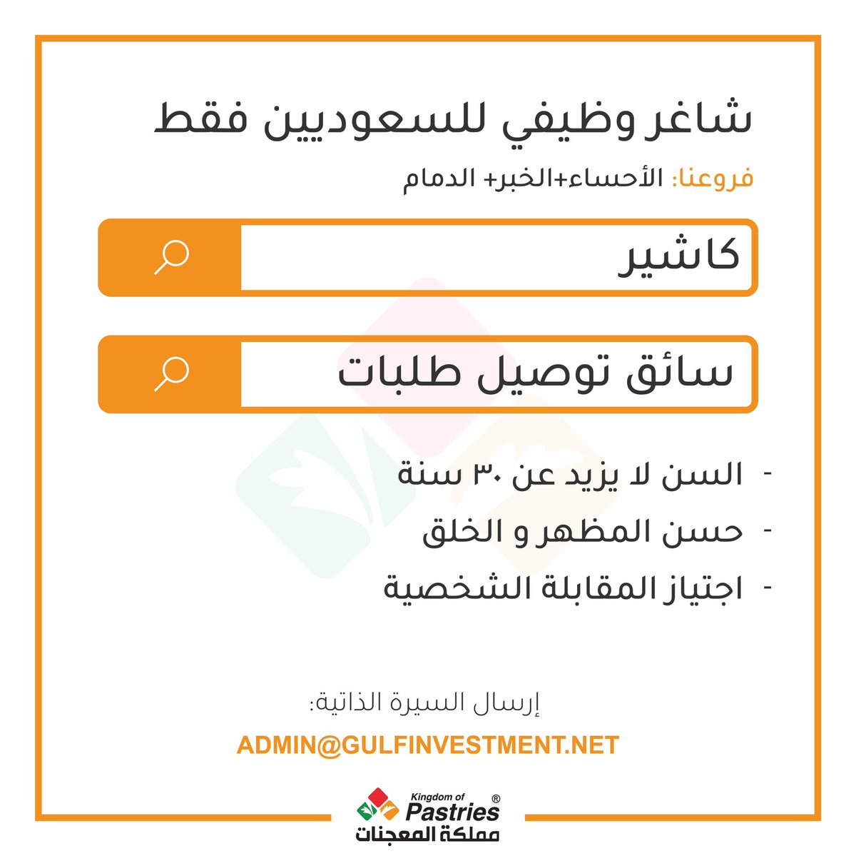 اعلنت مملكة المعجنات توفر وظائف شاغرة للعمل بالخبر والدمام والأحساء، واشترطت الشركة أن يكون المتقدم سعودي الجنسية، وذلك وفقا للمسميات وطريقة التقديم الموضحة أدناه.