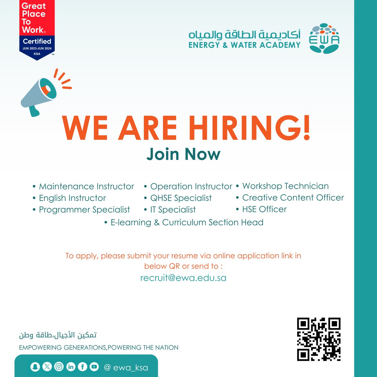 أكاديمية الطاقة والمياه تعلن توفر وظائف تعليمية وتدريبية وفنية وتقنية