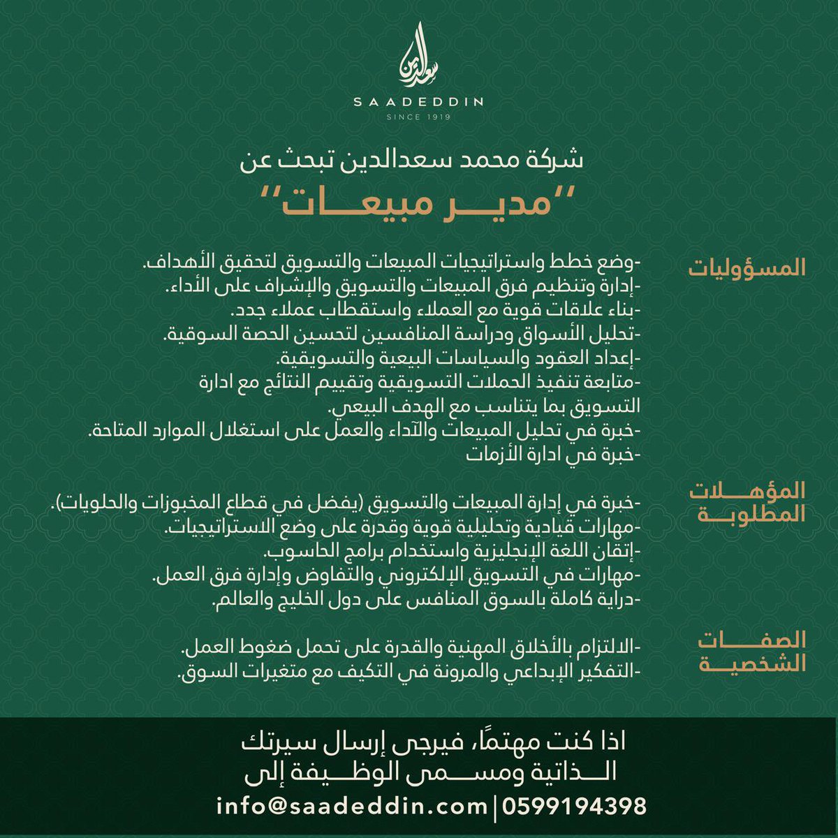 اعلنت شركة حلويات سعد الدين عن توفر وظائف شاغرة (للجنسين) في عدة مجالات، وذلك وفقاً للتفاصيل وطريقة التقديم الموضحة أدناه.