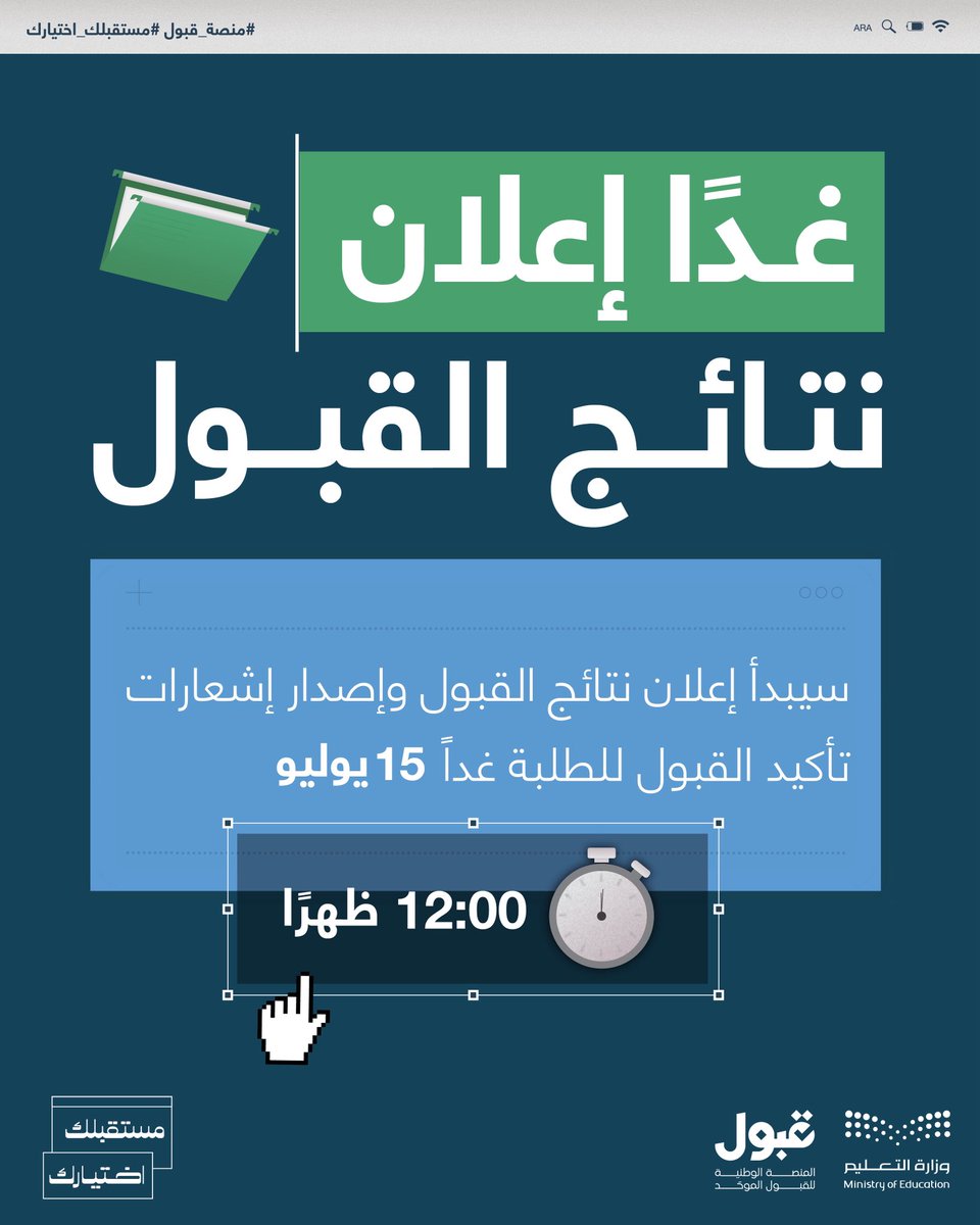 اعلنت وزارة التعليم عن إطلاق المنصة الوطنية للقبول الموحد "منصة قبول"، وذلك كإحدى المبادرات الاستراتيجية لتعزيز التحول الرقمي في التعليم وتوحيد إجراءات القبول في الجامعات والجهات التعليمية. تهدف المنصة إلى تيسير تجربة القبول الجامعي للطلاب والطالبات في جميع مناطق المملكة من خلال بوابة رقمية موحدة وشاملة، وذلك وفقاً للتفاصيل الموضحة أدناه.
